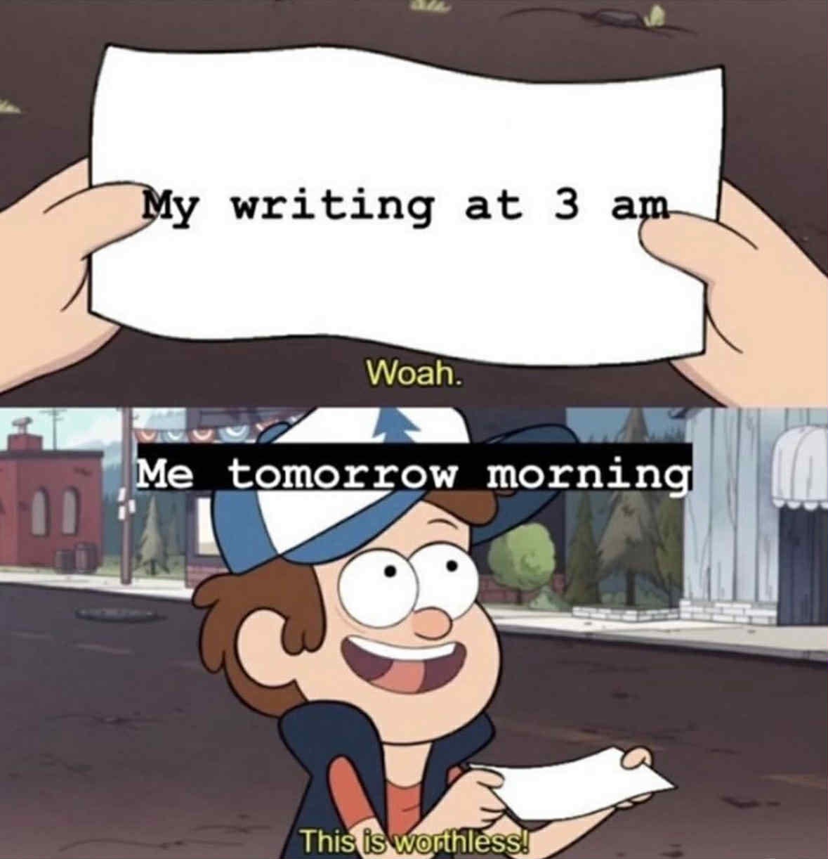 I thought I wrote a lot. Then I pressed command+shift+c and reality slapped me in the face at the same time as that measly 502 word count on the screen. That was disappointing, so I decided to read the short story I finished drafting earlier this month. The short story had time to marinate, and now with fresh eyes I can see that it is NOT GOOD.